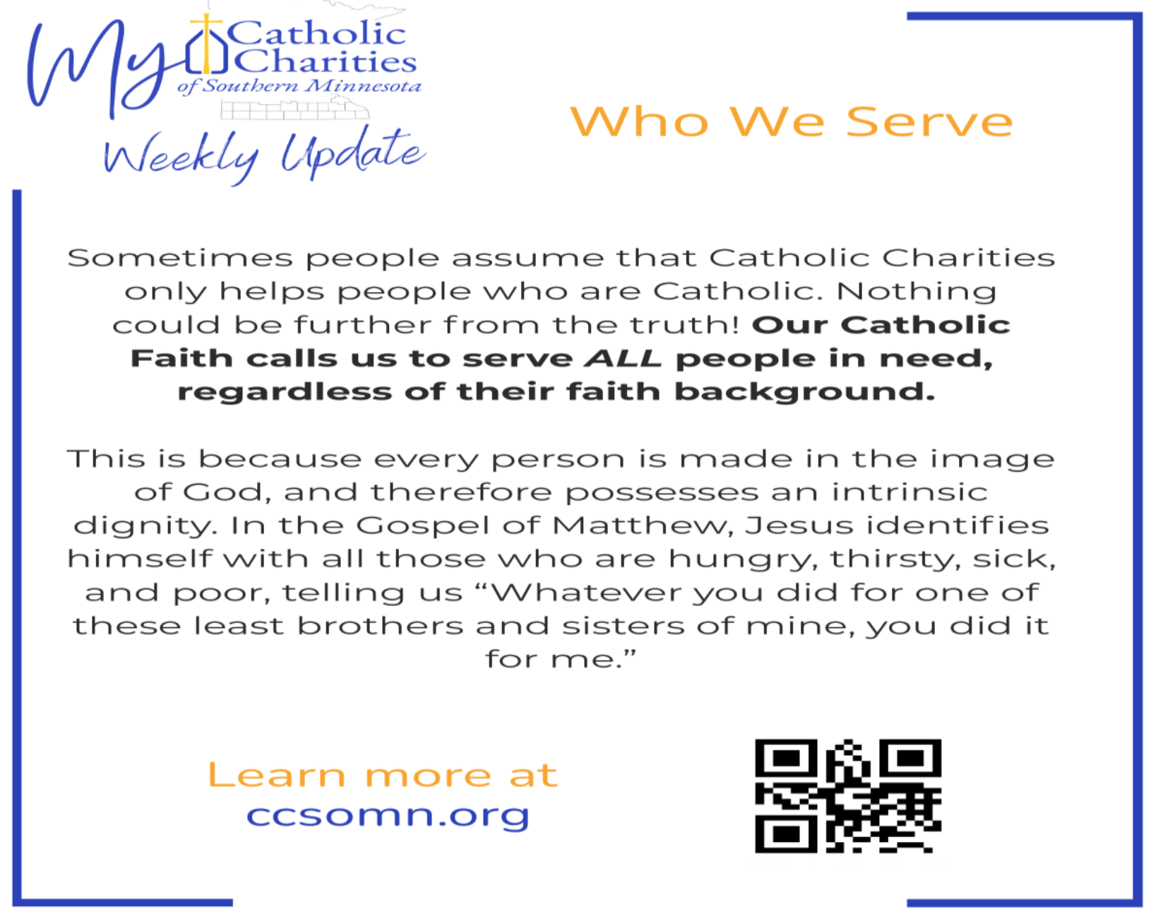 Thank you to all who contributed towels and personal supplies to our Windom Sharing Center. 121# for Sanitary bags, 71# of Food, 100 towels were collected from the Faith Formation Lenten Project. Such generosity is greatly appreciated and makes a huge impact on many area families.